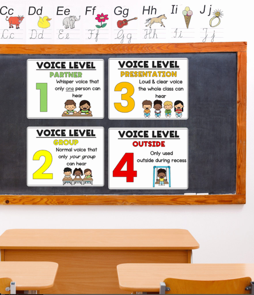 Silent work time sounds different than partner work time. Give kids language and calibration for volume.